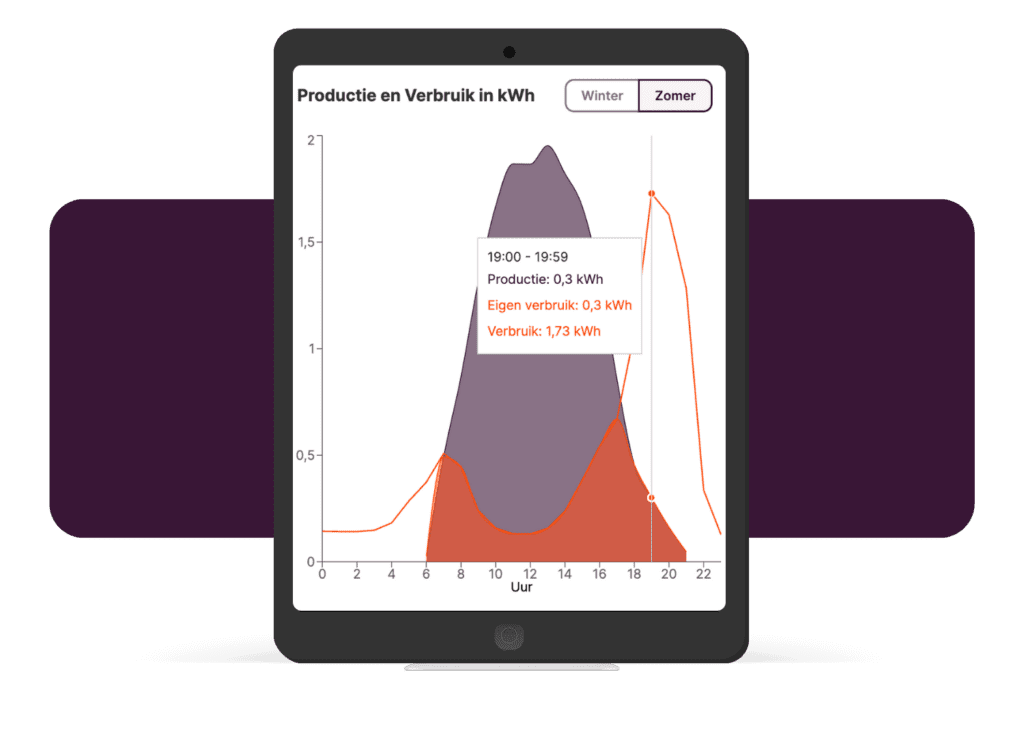 In Solar Monkey schauen wir uns außerdem an, wann Wilmas Solarstrom erzeugt wird. Sehr übersichtlich sieht man dort, wie sich die Erzeugung zum eigenen Verbrauch verhält. Leider zeigt sich: Der große Verbrauchspeak durch den Whirlpool liegt außerhalb der Solarstrom-Erzeugung.