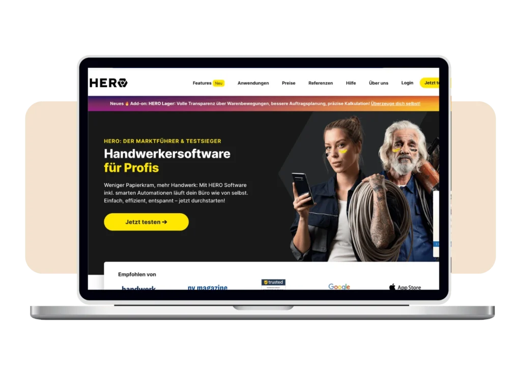 - HERO: geeignet für Installationsunternehmen, die ein branchenorientiertes ERP-System möchten, stark in Arbeitsaufträgen und Außendienst. Besonders geeignet, wenn Sie weniger Wert auf den Vertriebsprozess legen, sondern vor allem wollen, dass Ihr Außendienst schnell und effizient arbeiten kann.